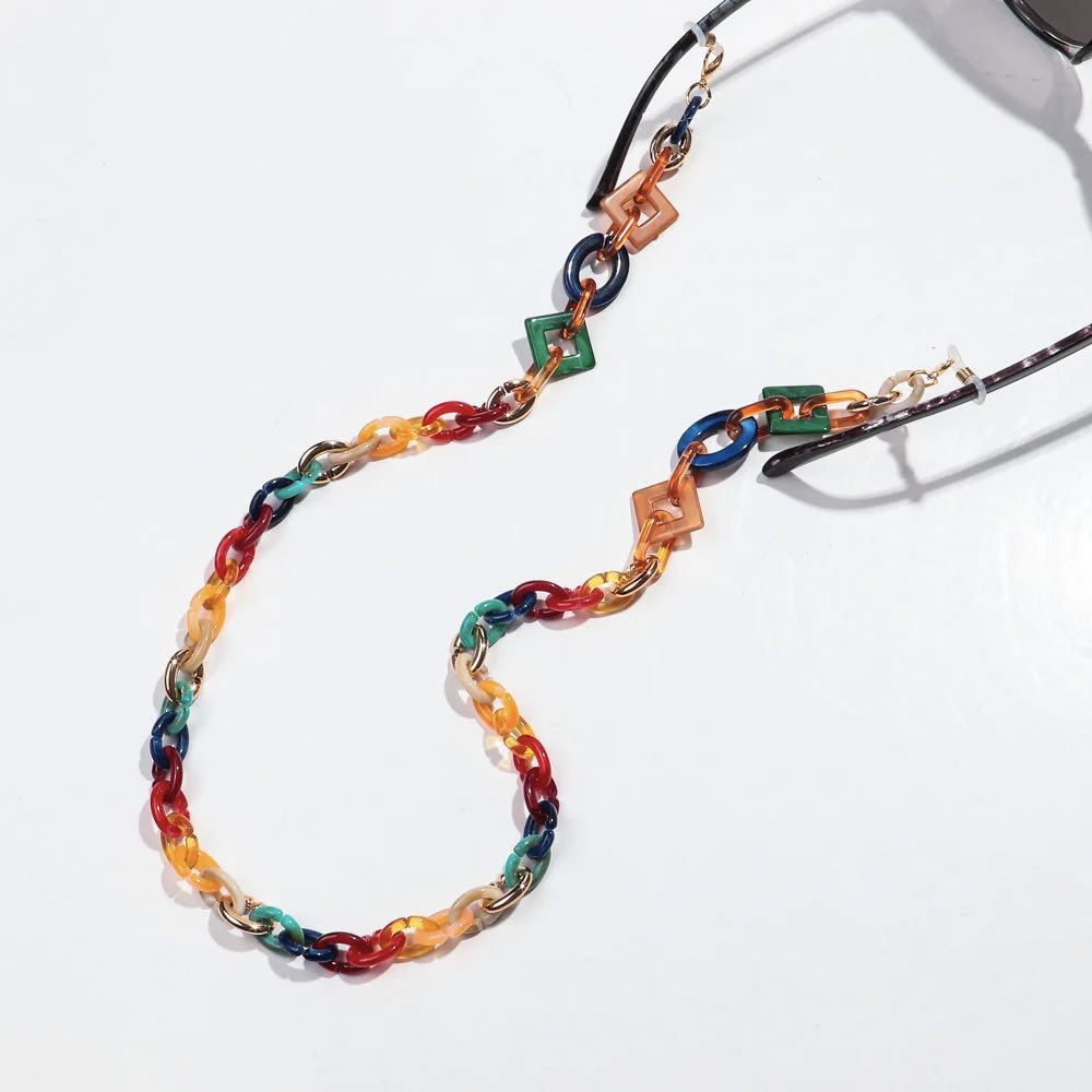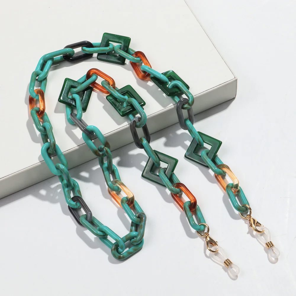 Bringe Farbe in deine Accessoires mit der ChromaLink Boho Brillen Kette. Aus bunten Acryl-Resin-Gliedern im geometrischen Design gefertigt, ist diese modische Kette perfekt für Damen, die Praktikabilität mit Stil verbinden möchten.