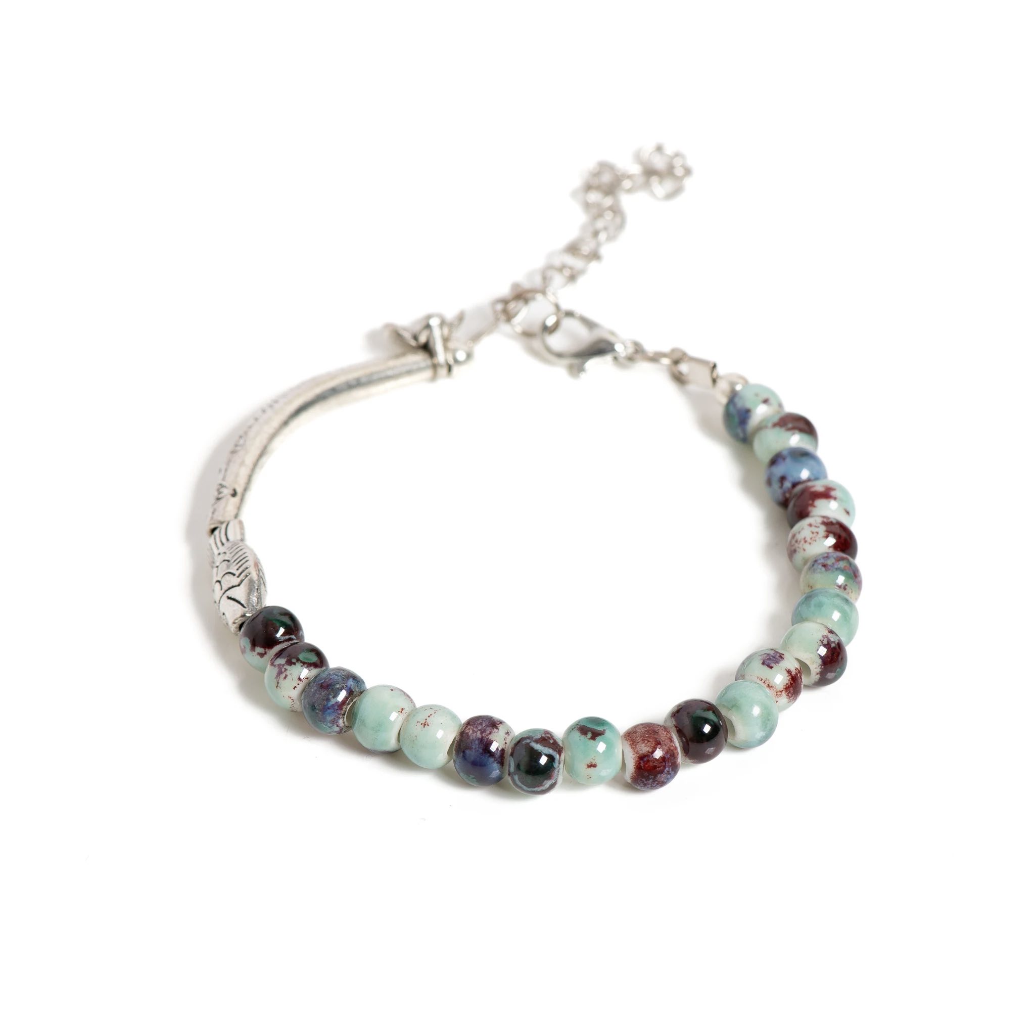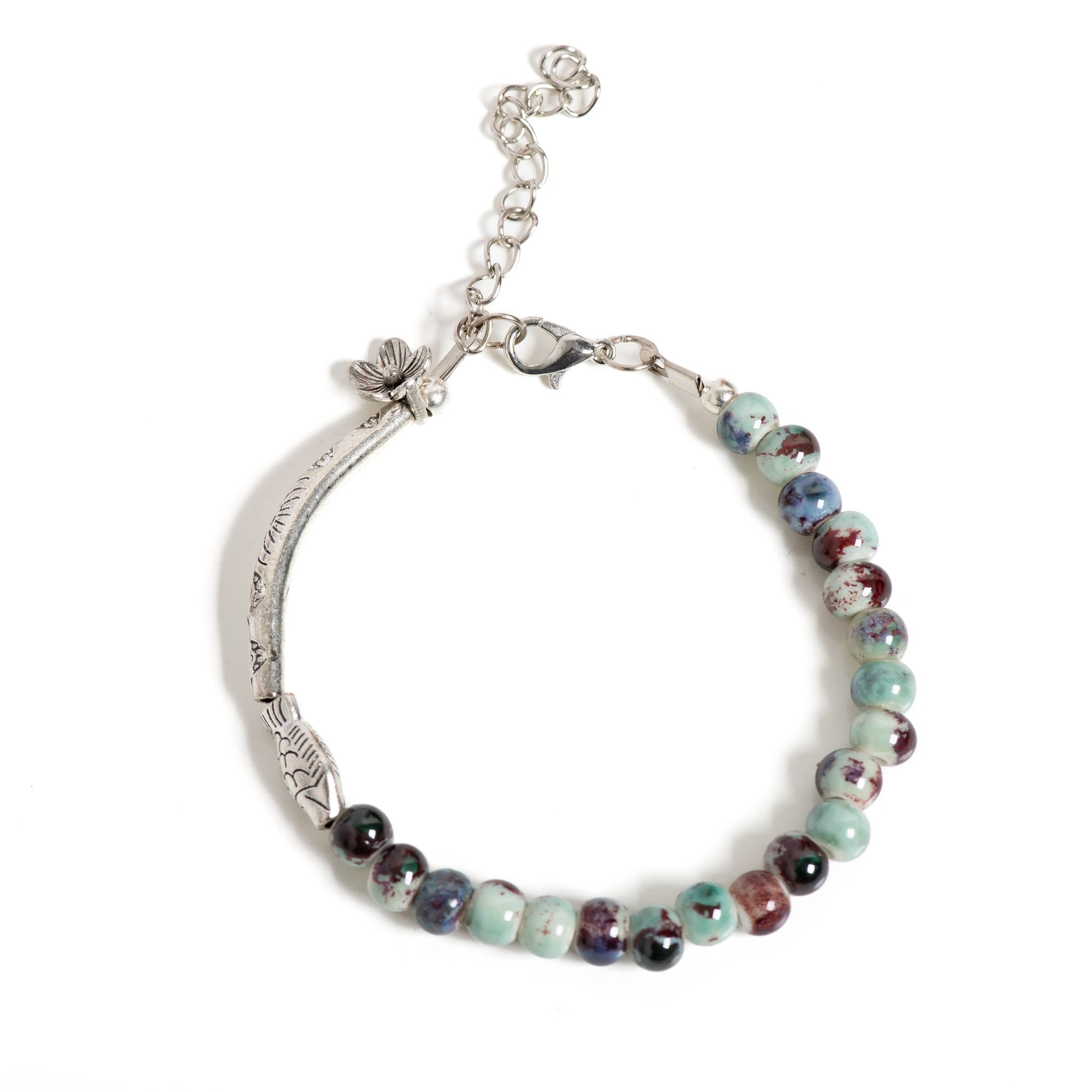 Bringe künstlerischen Charme in deinen Stil mit dem OceanBloom Keramik Fisch Armband. Dieses handgefertigte Schmuckstück vereint zarte Keramikperlen, florale Muster und einen symbolischen Fischanhänger zu einem einzigartigen Accessoire voller Eleganz, Kreativität und Boho-Spirit.