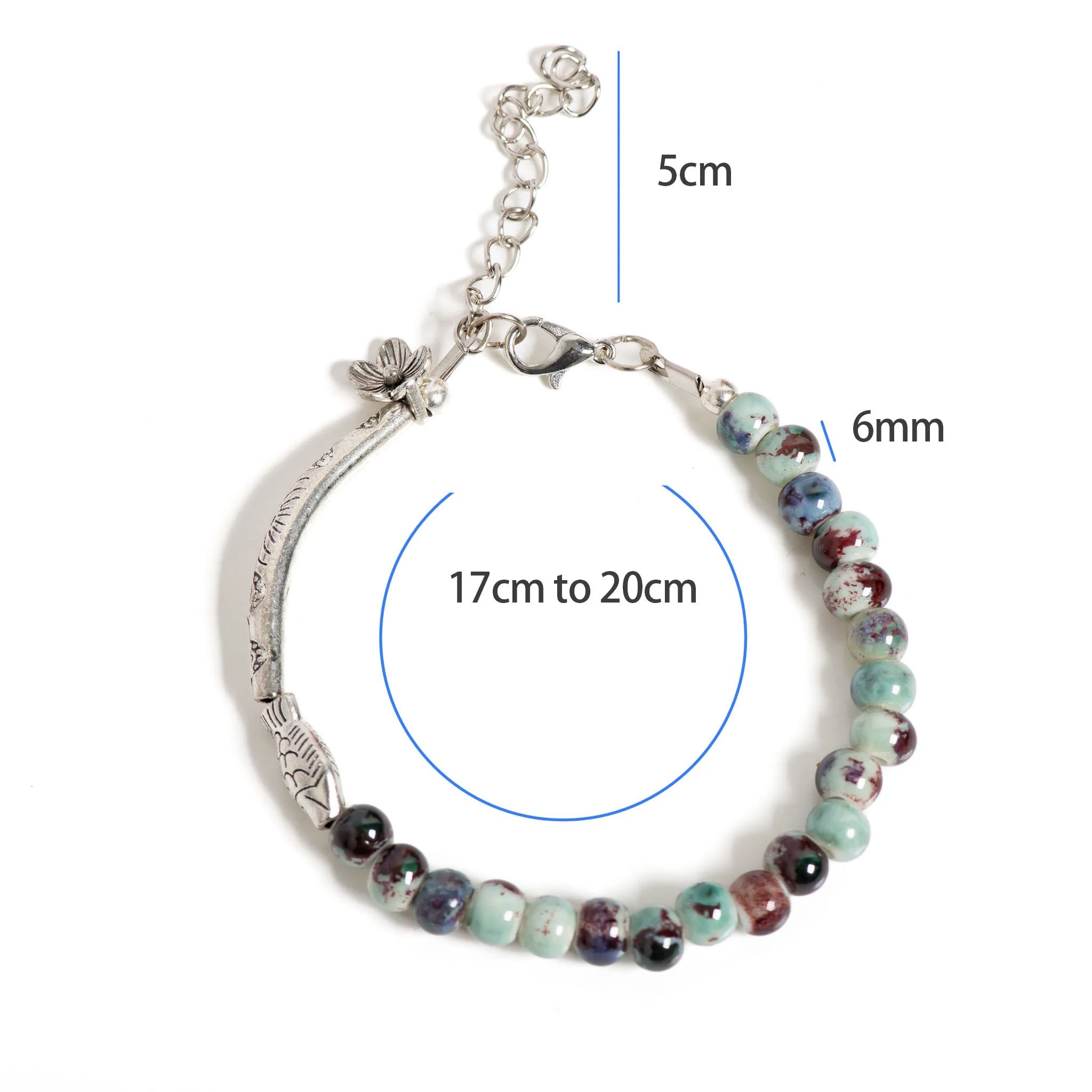 Das OceanBloom Keramik Fisch Armband ist mehr als nur Schmuck – es ist tragbare Kunst. Die floralen Keramikdetails kombiniert mit dem Fisch-Charme bringen Eleganz und Verspieltheit in Einklang. Kombiniere es mit legeren Outfits, Boho-Kleidern oder auch eleganter Abendmode für einen besonderen Look.